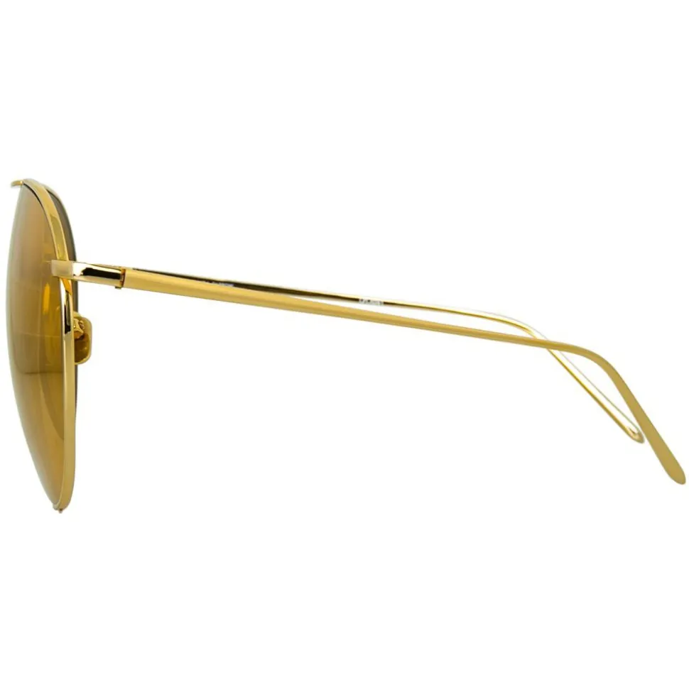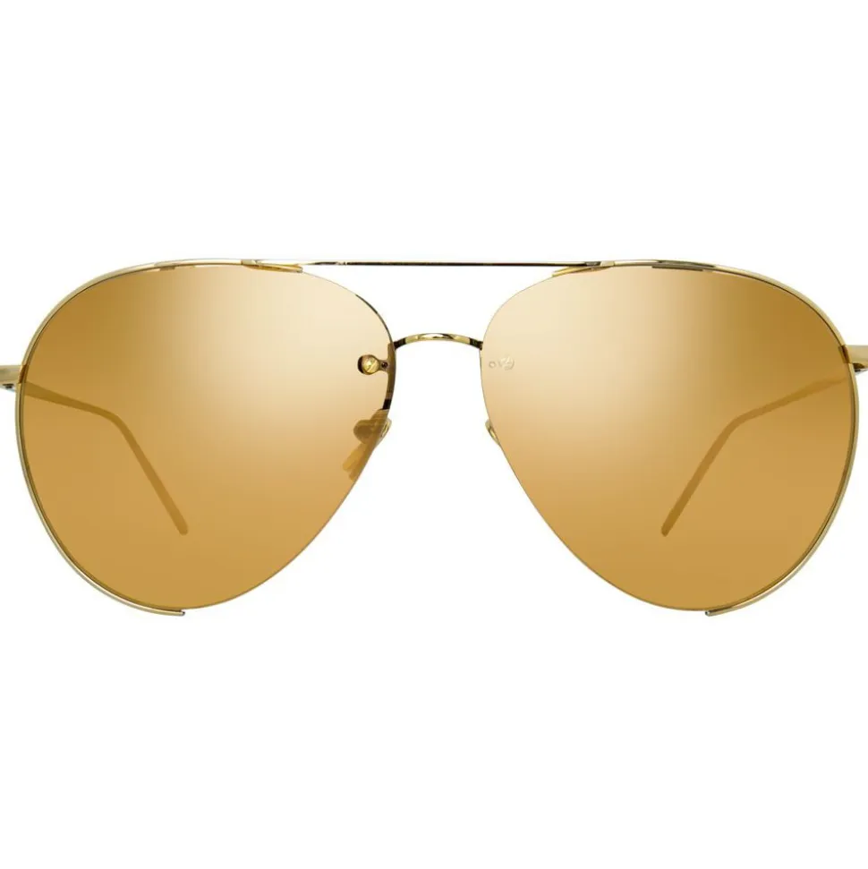 Effortlessly chic and timeless, these luxurious Linda Farrow aviator sunglasses are handcrafted entirely from 18 – 22 carat yellow gold-plated lightweight titanium with co-ordinating yellow gold precious lenses.