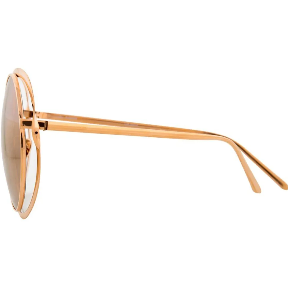 Embracing a world of vintage glamour, these round Linda Farrow sunglasses are crafted entirely from 18 – 22 carat rose gold-plated titanium. Key to the Linda Farrow collection, these statement sunglasses features rose gold precious lenses with a delicate twisted ribbon which creates a hyper feminine silhouette that mirrors the frames and showcases superior craftsmanship.