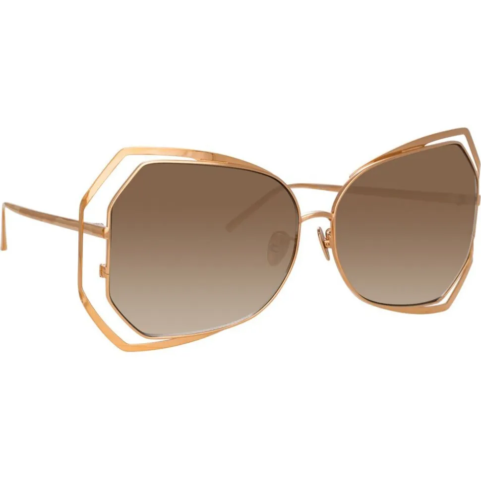 Crafted entirely from 18-22 carat rose gold-plated hypoallergenic lightweight titanium with co-ordinating mocha gradient lenses, they are hand finished with characteristic tapered temples complete with the Linda Farrow logo and adjustable nose pads for superior comfort.
