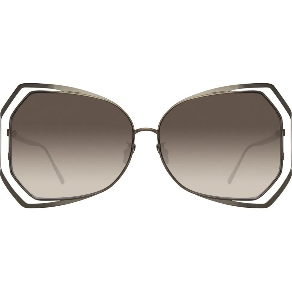 Crafted entirely from nickel-plated hypoallergenic lightweight titanium with co-ordinating grey gradient lenses, they are hand finished with characteristic tapered temples complete with the Linda Farrow logo and adjustable nose pads for superior comfort.