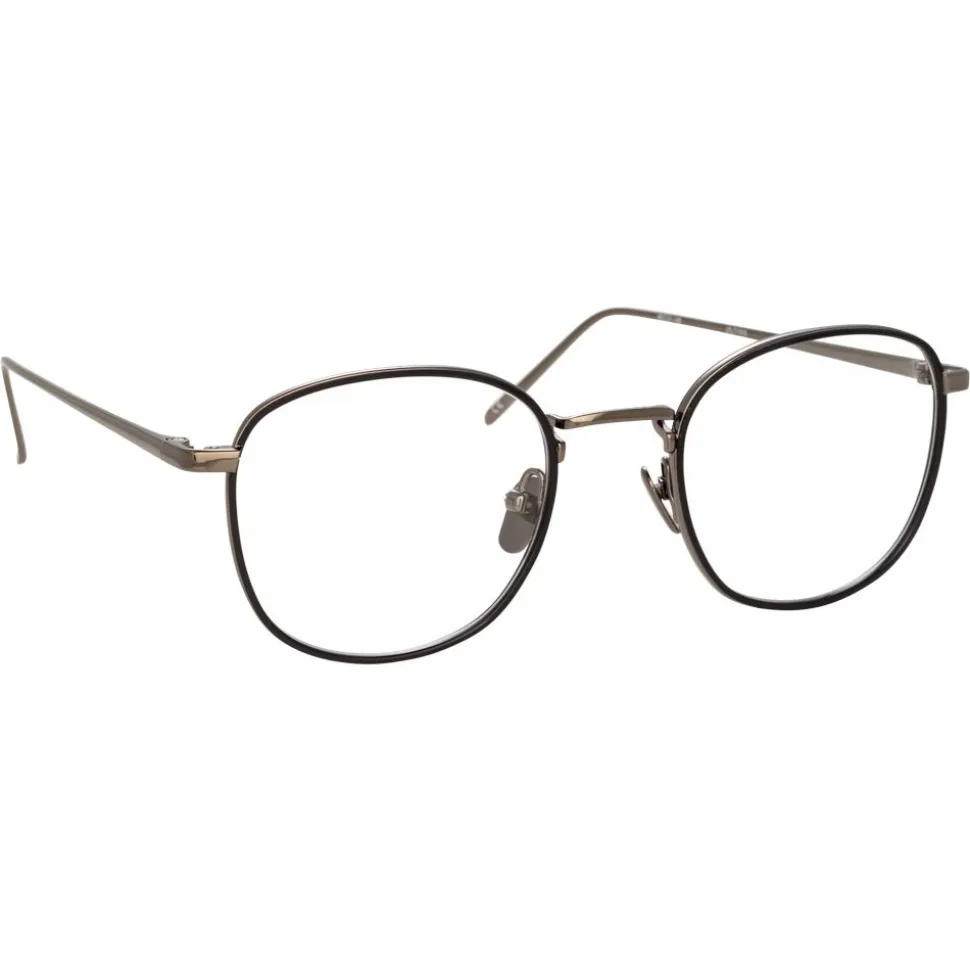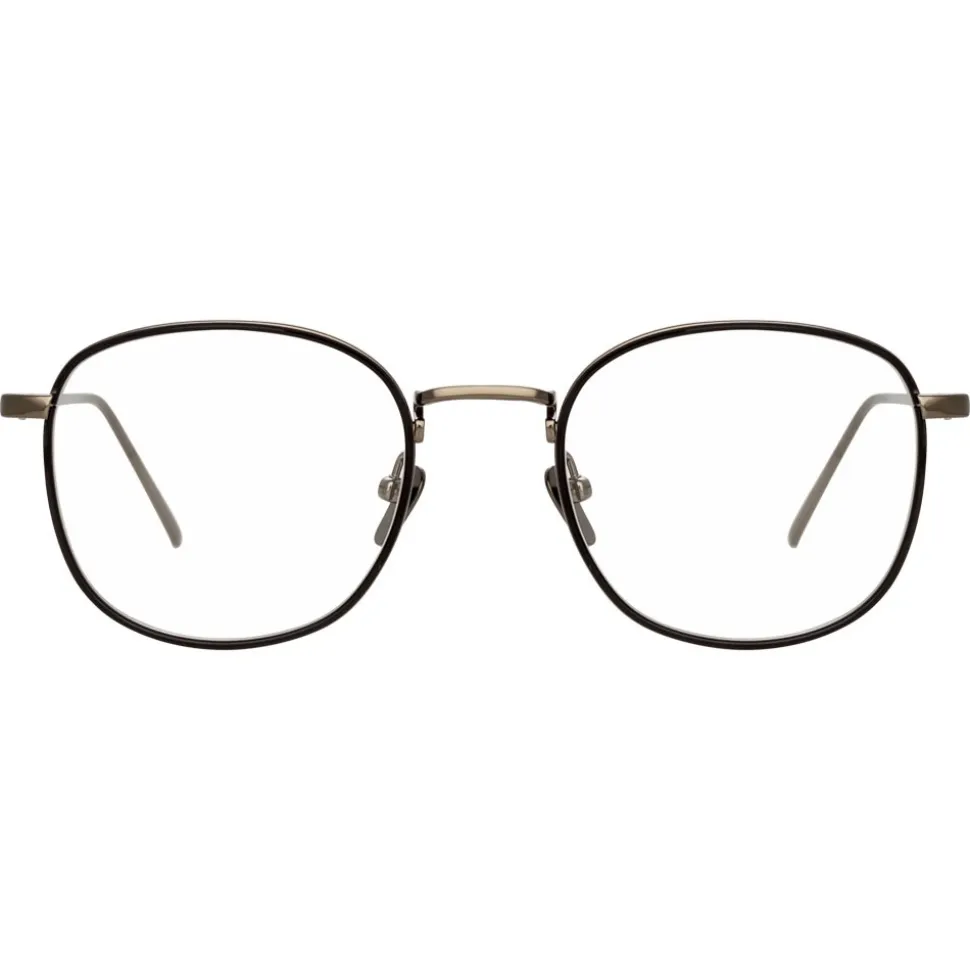 Taking inspiration from vintage silhouettes, these unisex square optical glasses from Linda Farrow are crafted from luxurious 18-22 carat nickel plated hypoallergenic titanium. The inner windsor rim in black Italian acetate contours the frame and gives the illusion of the metal being trapped inside. Sleek temples are tapered with curved temple tips for superior comfort, finished by hand with the Linda Farrow logo and adjustable nose pads.