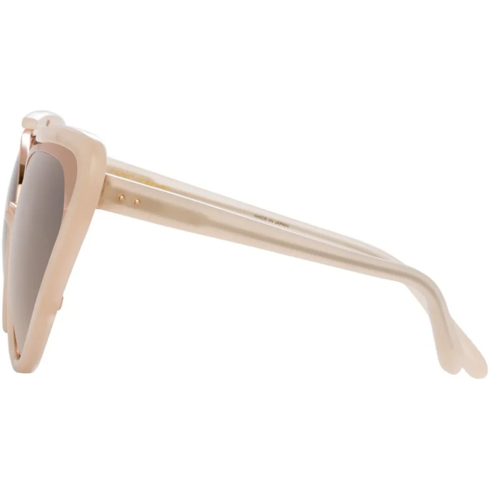 Made for warm winter sun getaways, these effortlessly chic Linda Farrow cat eye sunglasses emanate a subtle sense of luxury. The milky pink Italian acetate frame is hand polished for a high shine, then cut-away at the top of the frame to reveal the rose gold-plated titanium rims which hug dusky light brown gradient lenses.