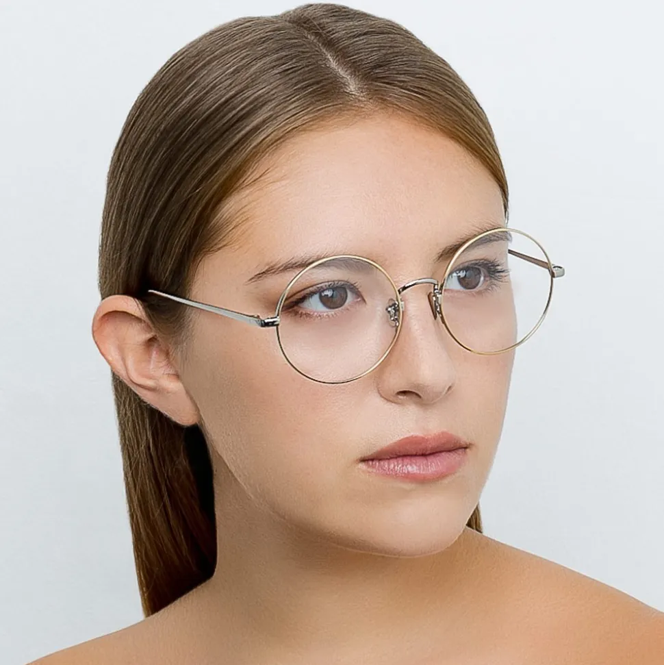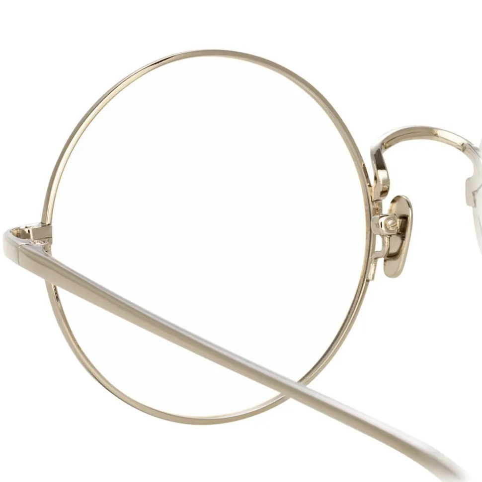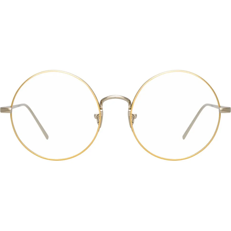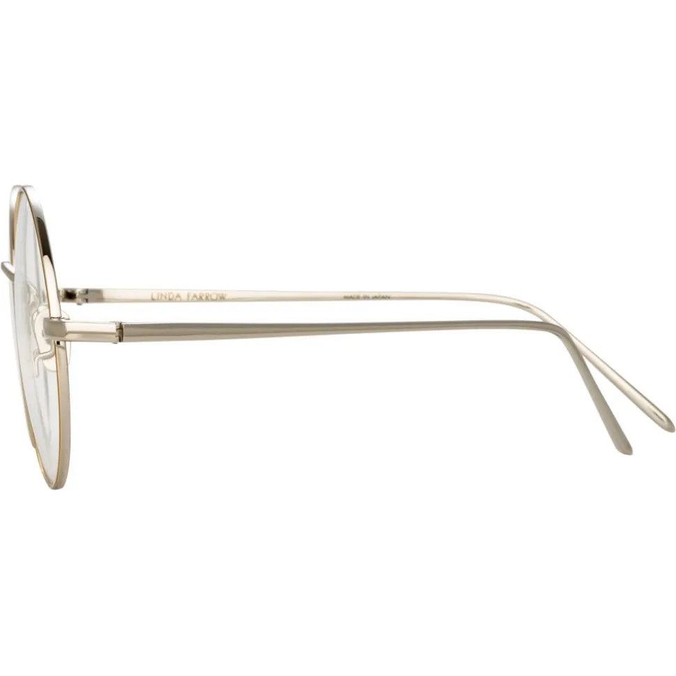 The epitome of luxurious, vintage-inspired design, these round Linda Farrow optical glasses are handcrafted entirely from 18-22 carat white gold-plated hypoallergenic titanium. Accented with 18-22 carat yellow gold-plated hypoallergenic titanium to the rims, these sunglasses feature a raised curved nose bridge. Signature finishes include tapered temples complete with the Linda Farrow logo and adjustable nose pads for superior comfort.
