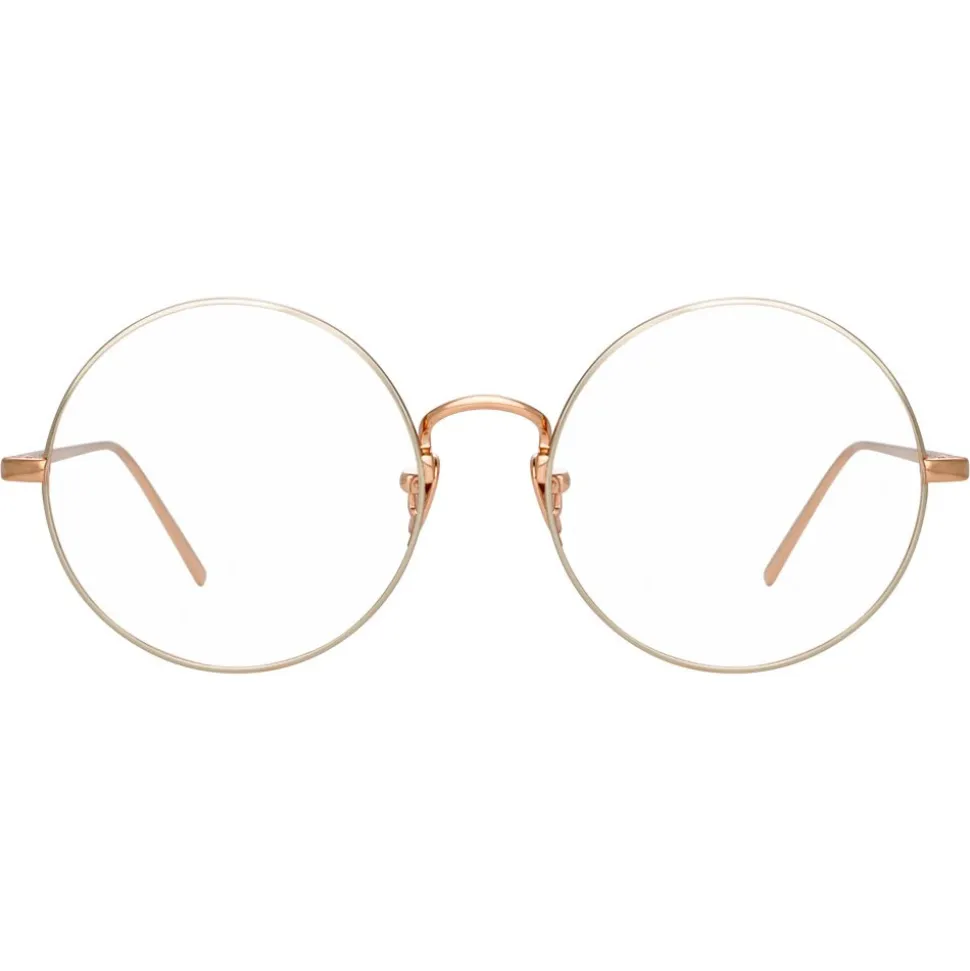 The epitome of luxurious, vintage-inspired design, these round Linda Farrow optical glasses are handcrafted entirely from 18-22 carat rose gold-plated hypoallergenic titanium. Accented with 18-22 carat white gold-plated hypoallergenic titanium to the rims, these sunglasses feature a raised curved nose bridge. Signature finishes include tapered temples detailed with the Linda Farrow logo and adjustable nose pads for superior comfort.