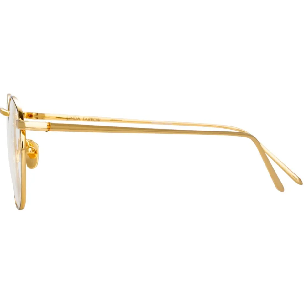 The hero Linda Farrow men’s style for SS18, the ‘Tomasi’ is handcrafted entirely from 18-22 carat yellow gold-plated hypoallergenic titanium. Accented with 18-22 carat white gold-plated hypoallergenic titanium to the rims, these optical glasses feature a raised curved nose bridge. Signature finishes include tapered temples complete with the Linda Farrow logo and adjustable nose pads for superior comfort.