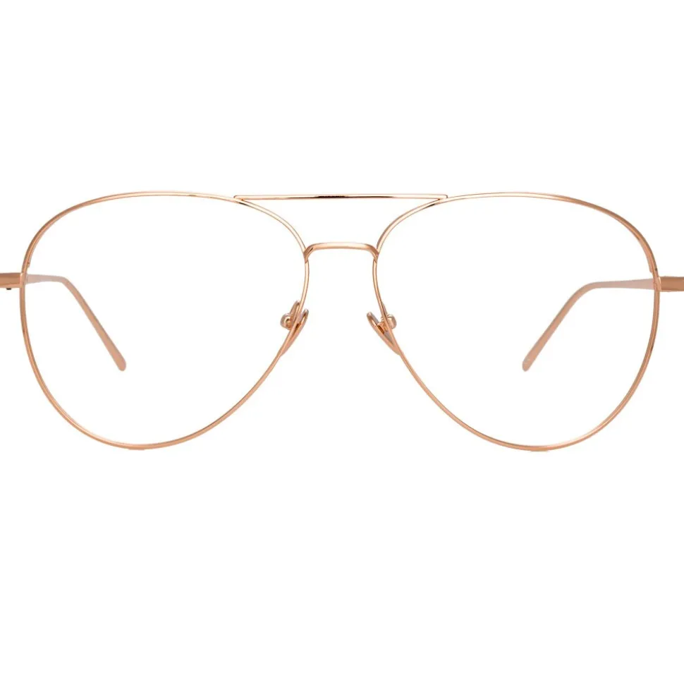 Reimagining the classic aviator silhouette in pure 18-22 carat rose gold-plated hypoallergenic titanium, these luxurious unisex Linda Farrow optical glasses imbue timeless elegance. Finished by hand, they feature a double nose bridge and slim, lightweight temples finished with the Linda Farrow logo, tapered for superior fit. Adjustable nose pads provide superior comfort.