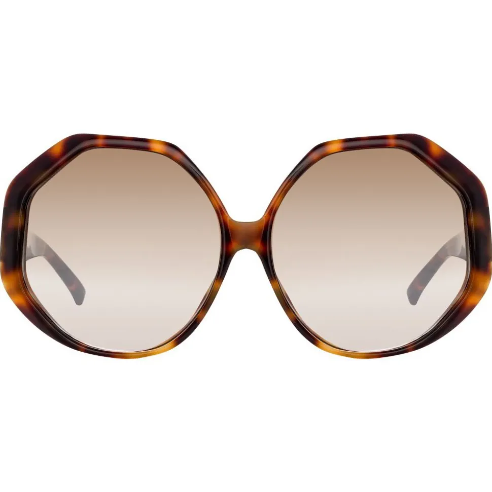 Encapsulating a world of exotic beauty, these bold oversized Linda Farrow sunglasses are hand-crafted from tortoiseshell Italian acetate. Beveled and hand-polished to achieve a luxurious shine and complete with signature yellow gold Linda Farrow detailing, they evoke warm winter getaways.