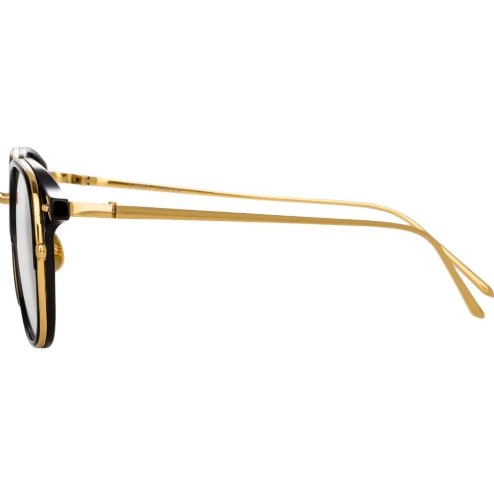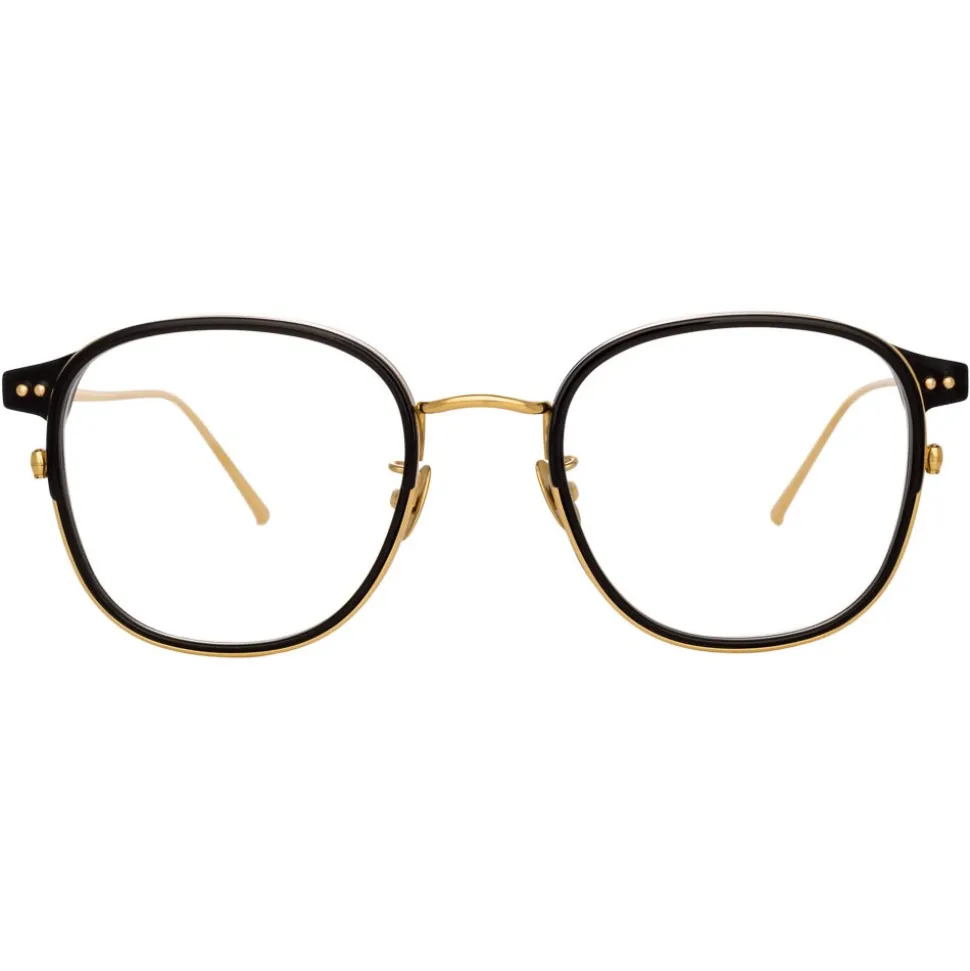 Bringing a classic shape with luxurious details, these men’s Linda Farrow optical glasses are crafted from yellow gold-plated ultra lightweight titanium and black Italian acetate. The inner Windsor rim profiles the lenses, accentuated with a coordinating lip which creates an eye-catching juxtaposition with the yellow gold rim.