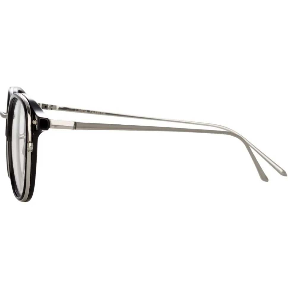 Bringing a classic shape with luxurious details, these men’s Linda Farrow optical glasses are crafted from white gold-plated ultra lightweight titanium and black Italian acetate. The inner Windsor rim profiles the lenses, accentuated with a coordinating lip which creates an eye-catching juxtaposition with the yellow gold rim.