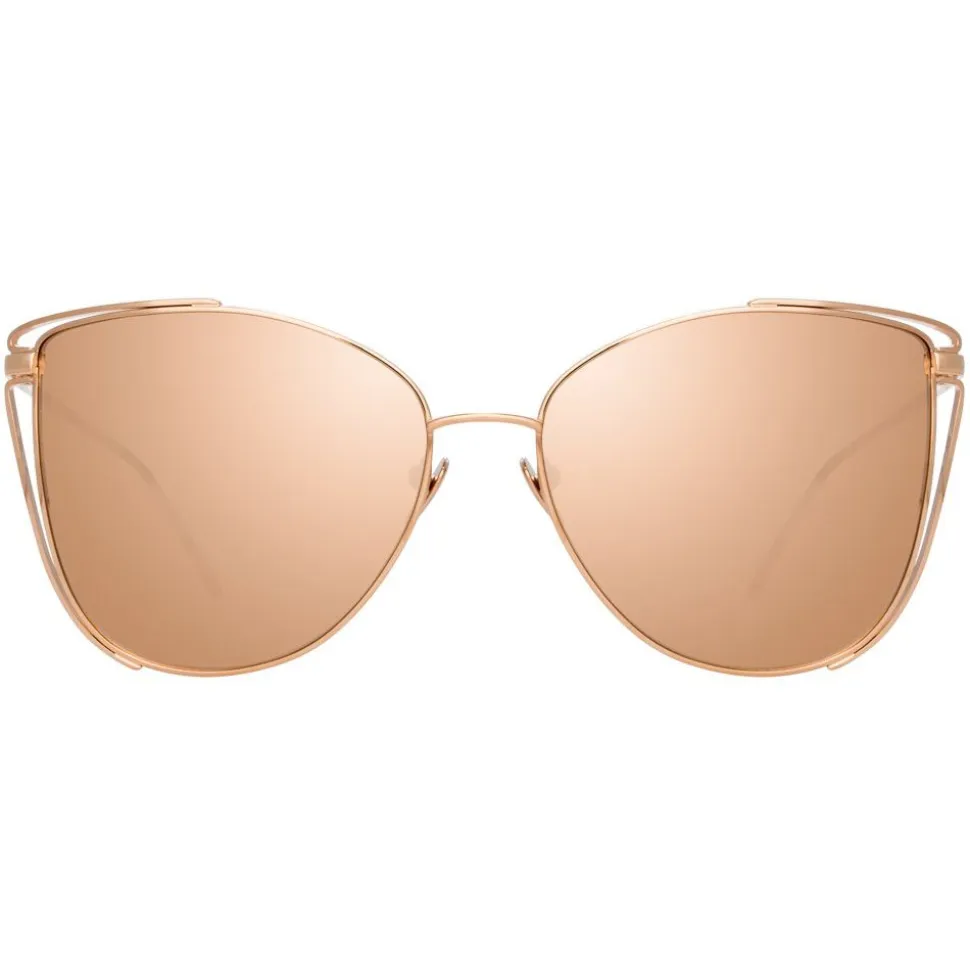 Bringing the glamour to a classic silhouette, these oversized Linda Farrow sunglasses take the cat eye to the next level. The corners of the rose gold-plated titanium frames are mirrored to give their clean aesthetic a touch of the unexpected. Paired with rose gold precious lenses, they transport you to a place of exotic beauty.