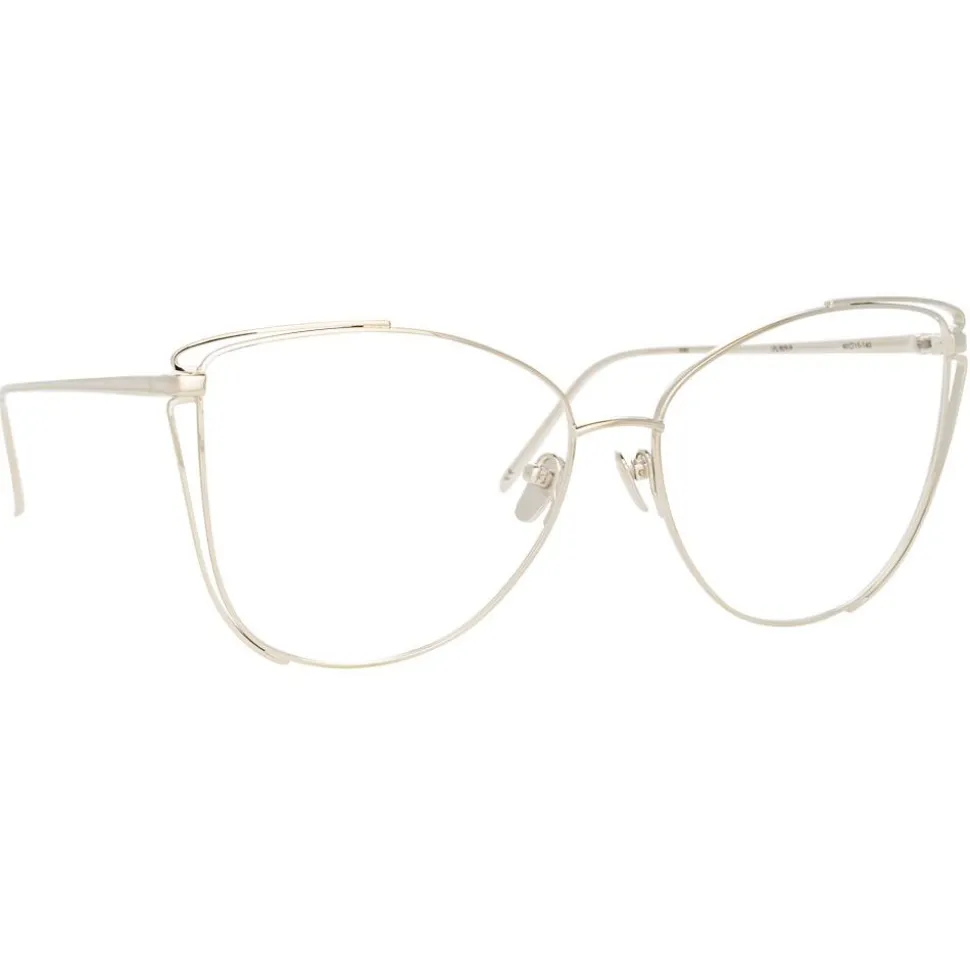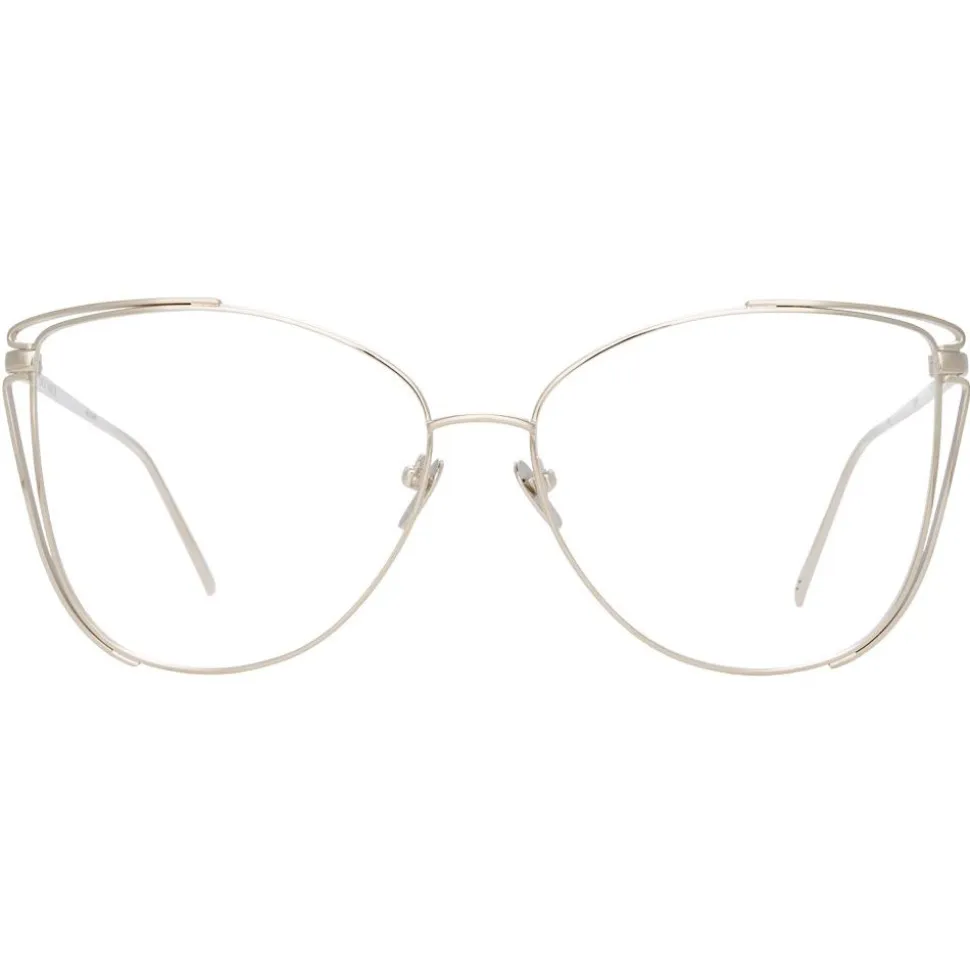 Bringing the glamour to the optical glass, these oversized Linda Farrow white gold-plated titanium glasses take the classic cat eye to the next level. The corners of the frame are accentuated with a wire frame that mirrors its clean lines for a touch of the unexpected.