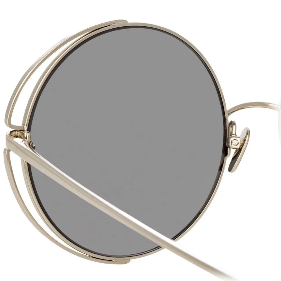 A key silhouette for the season and beyond, these oversized round Linda Farrow sunglasses bring a touch of the unexpected. Crafted entirely from white gold-plated titanium with coordinating platinum precious lenses for an effortlessly chic look, the frames are outlined at the corners, creating an eye-catching illusion of negative space.