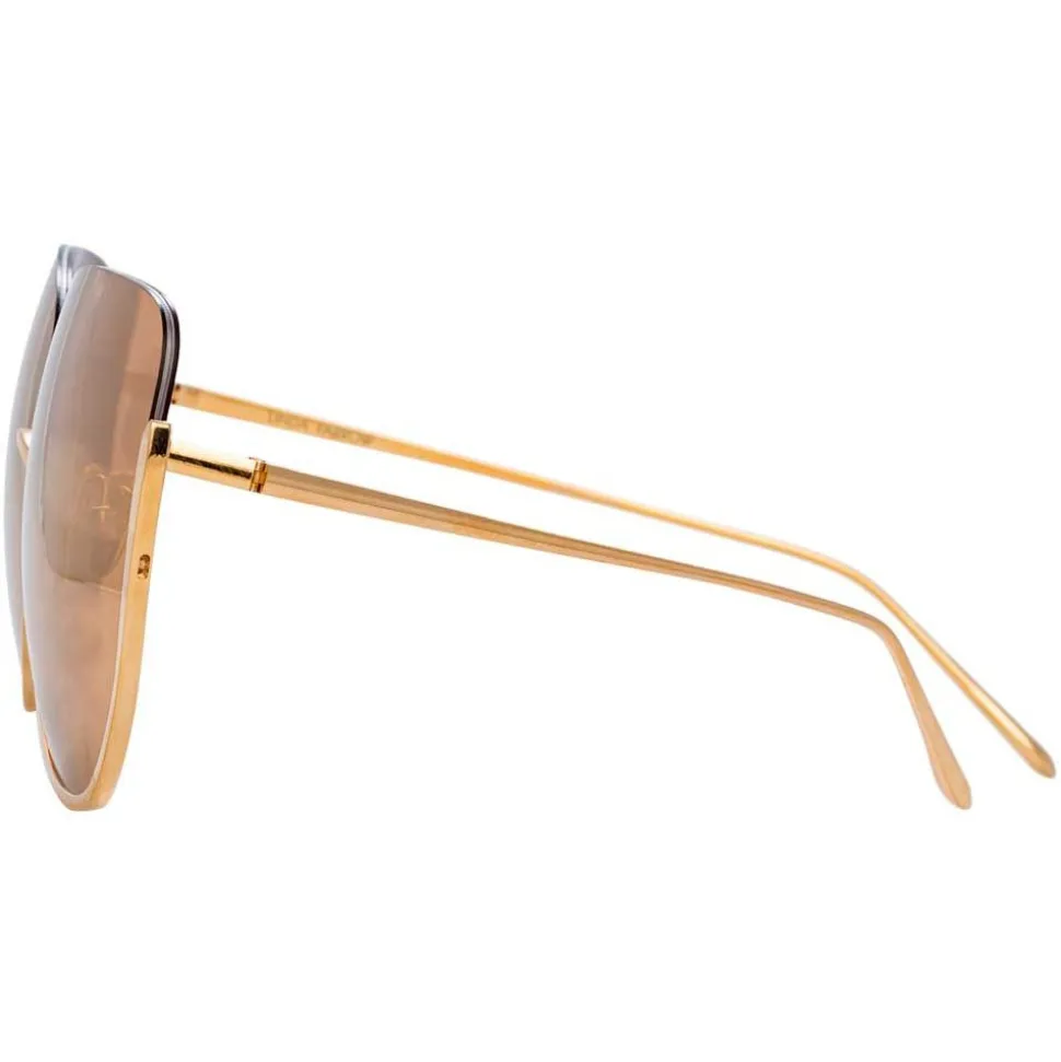 Born from a sense of adventure, these oversized Linda Farrow sunglasses bring the rich textures, colours and effortlessly chic sense of glamour from a Far East metropolis. Taking its name from the streets of Hong Kong, the Kennedy is crafted entirely from 18-22 carat rose gold-plated lightweight titanium, with the frames cut away at the top to reveal the co-ordinating rose gold precious lenses.