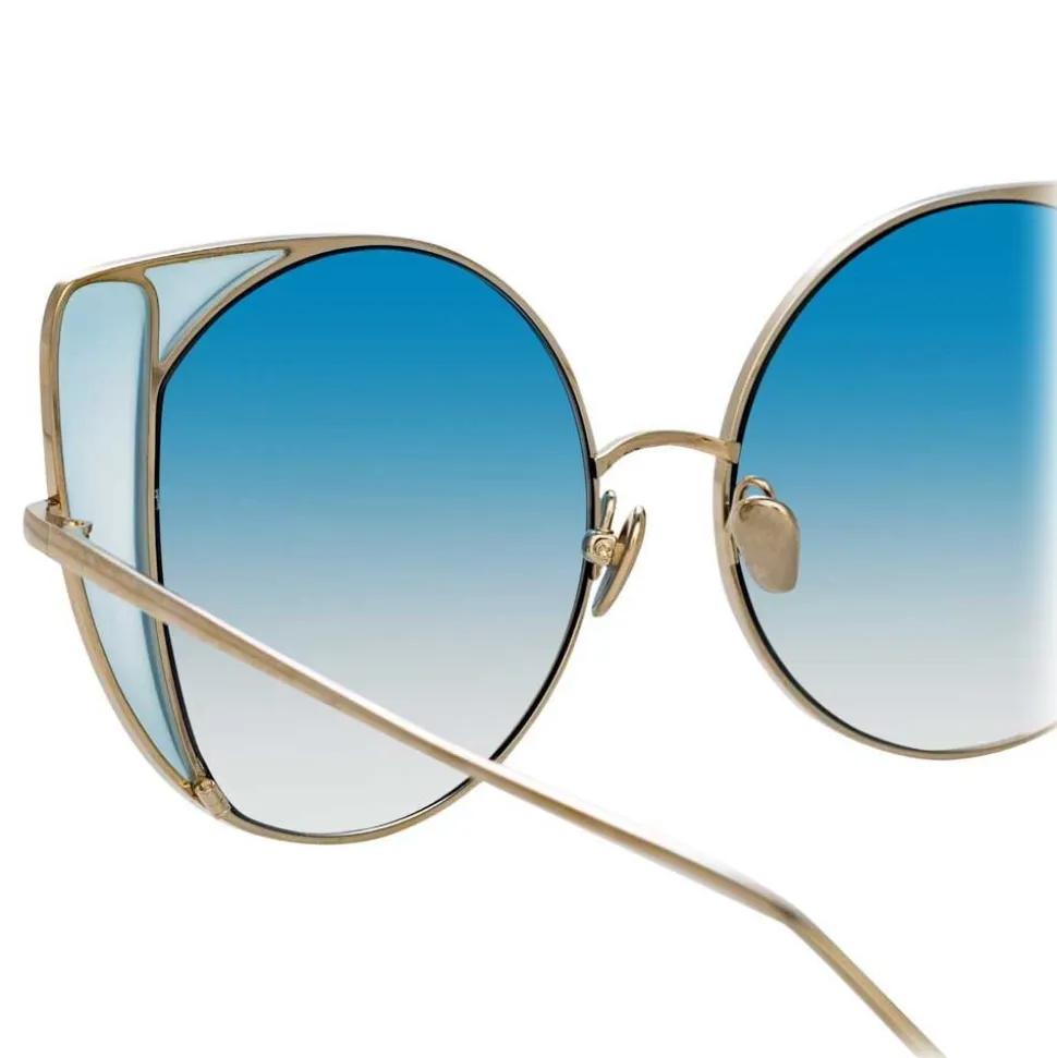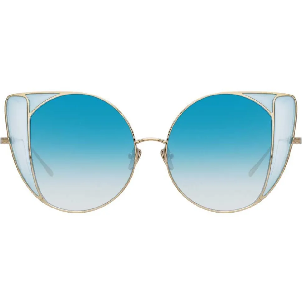 Transporting you through the street of Hong Kong that it takes its name from, the Austin brings an uplifting, oversized take on the timeless cat eye silhouette with luxurious details inspired by the bold colours and rich textures of the Orient. Pairing 18-22 carat light gold-plated titanium with blue gradient lenses, they are elevated with blue ‘stained glass’ details, showcasing the highest level of craftsmanship.