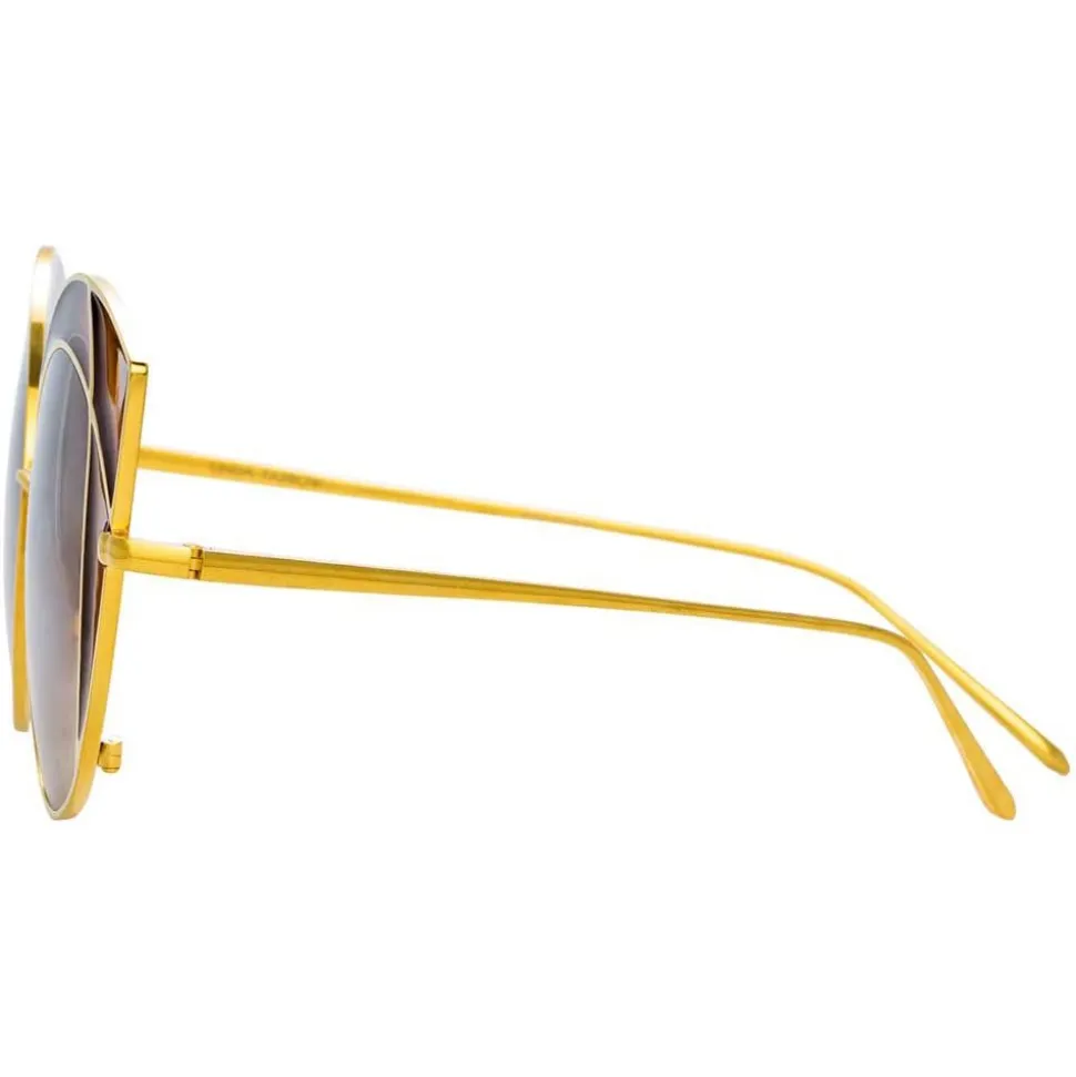 A fusion of vivid, warm hues and rich textures inspired by oriental cities, these winged cat eye Linda Farrow sunglasses pair yellow gold-plated titanium frames with brown gradient lenses. The corners are accented with tobacco brown ‘stained glass’, evoking a feeling of understated luxury.