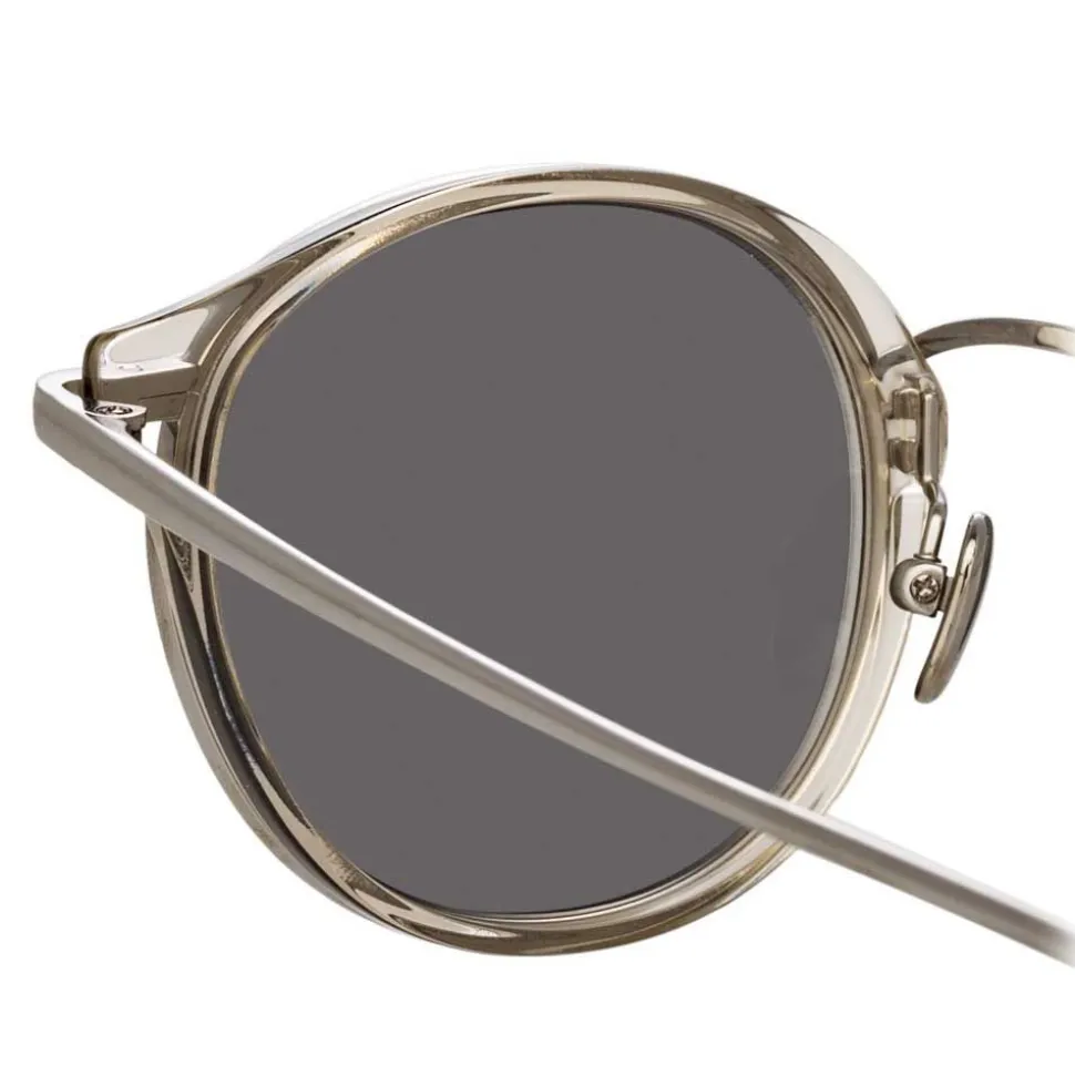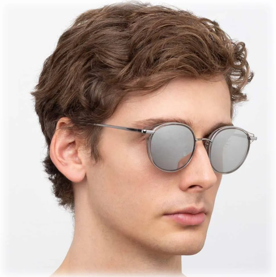Elevating the classic D-Frame silhouette with luxurious details that take inspiration from the warm tones and rich textures of the Orient, these unisex Linda Farrow sunglasses pair truffle Italian acetate with 18-22 carat white gold-plated titanium, which appears ‘trapped’ inside the frame. Complete with platinum precious lenses, these super lightweight, detail-oriented yet understated sunglasses will elevate the everyday.