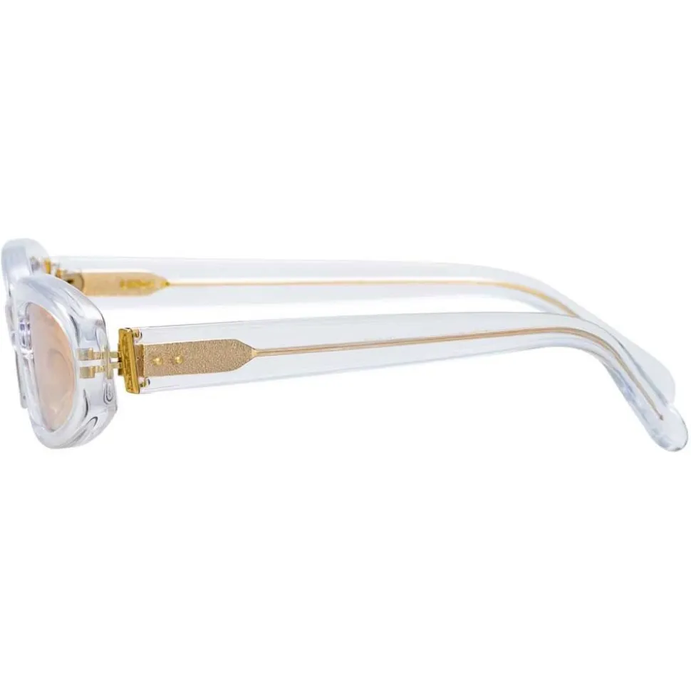 The season’s ultra-skinny silhouette, crafted with clear Italian acetate and dark grey lenses which harness new Zeiss Pure technology for a flawless lens with scratch-free innovation and twice the durability. Signature raised pins in light gold complete this standout Linda Farrow style.