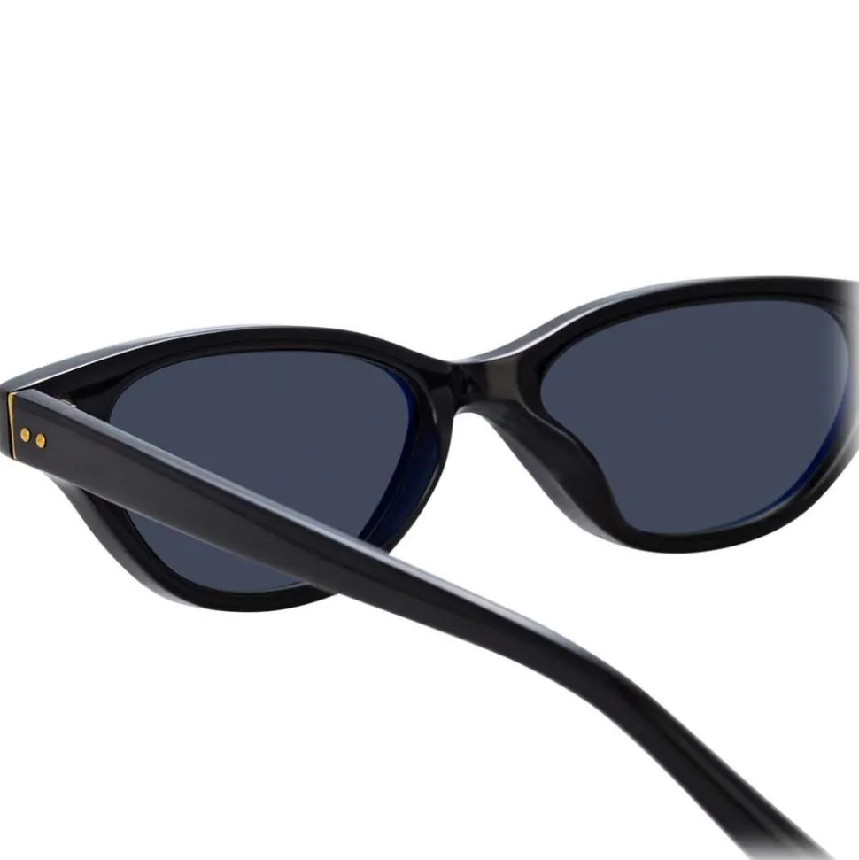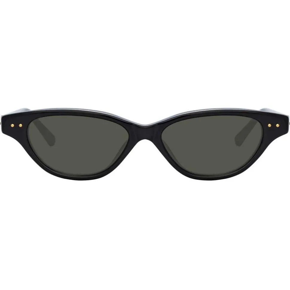Designed in collaboration with Alessandra Ambrosio, these skinny cat eye sunglasses bring glamorous yet contemporary appeal. Black Italian acetate frames are paired with dark grey lenses which harness new Zeiss Pure technology for a flawless lens with scratch-free innovation and twice the durability. Signature raised pins in yellow gold complete this standout Linda Farrow style.