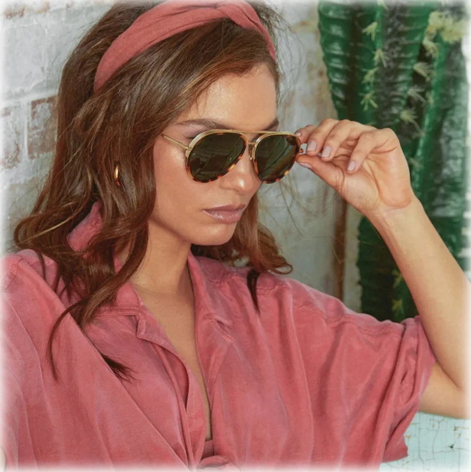 Meticulously engineered elements are layered together to give these aviator sunglasses from the LINDA FARROW collection their striking form. Rich tortoise shell acetate rims are capped with 22 carat light gold plated titanium which graduates in thickness to bring substance to the silhouette.