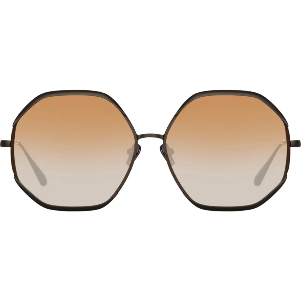 Linda Farrow – Camila Hexagon Sunglasses in Nickel Camel – LFL1208C6SUN – Linda Farrow Eyewear