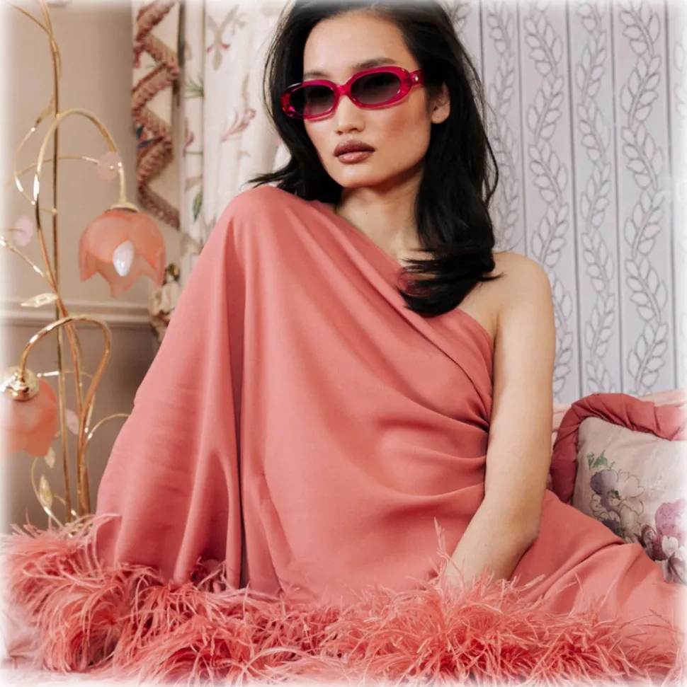 A beloved LINDA FARROW style the ever chic Cara frames are released in new tones for the season. Reimagined in a daring fuchsia acetate the luxuriously polished oval sunglasses carry sculpted nose pads and temple tips for a comfortable fit.
