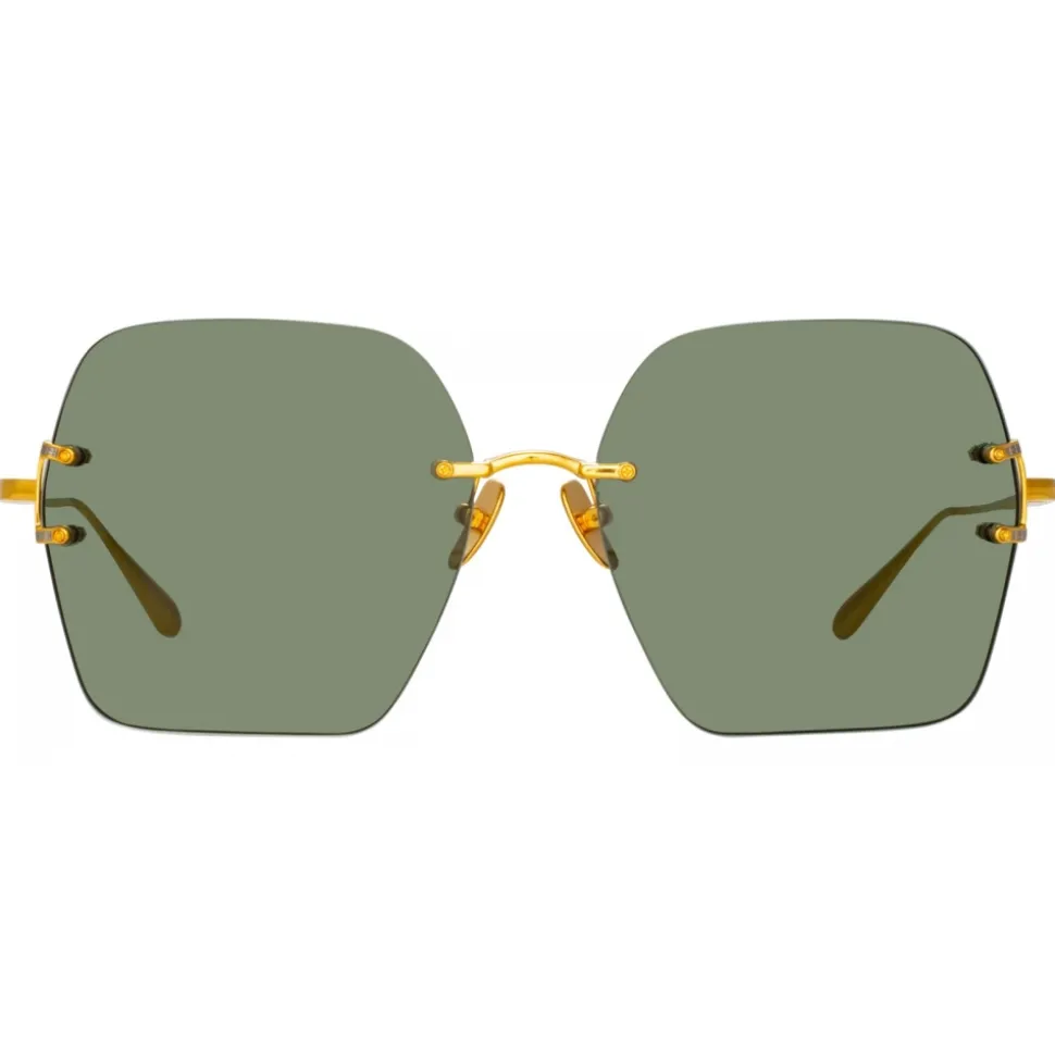Linda Farrow – Carina Oversized Sunglasses in Light Gold Green – LFL1395C2SUN – Linda Farrow Eyewear