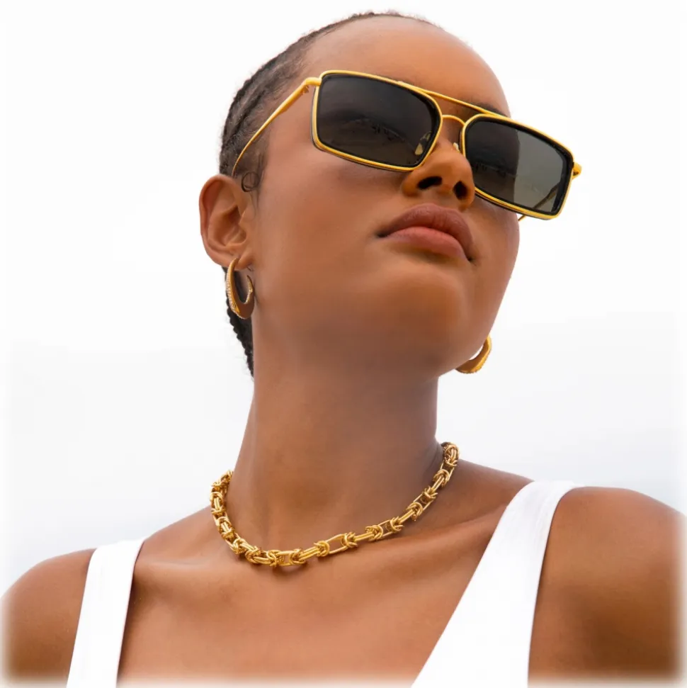 Linda Farrow – Cassia Rectangular Sunglasses in Yellow Gold Grey – LFL1392C1SUN – Linda Farrow Eyewear