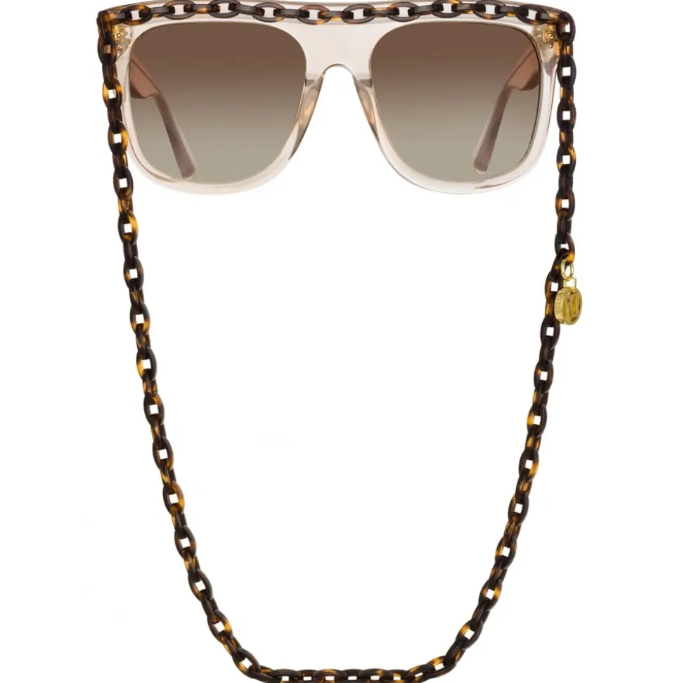 A statement of the season the Dakota flat top sunglasses carry an integrated chain which channels LINDA FARROW’s playful spirit.