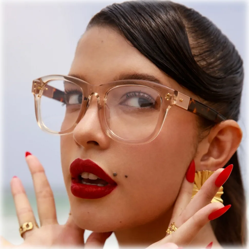 Introducing the Edson optical frames, these highly polished translucent acetate glasses are creafted from black acetate.