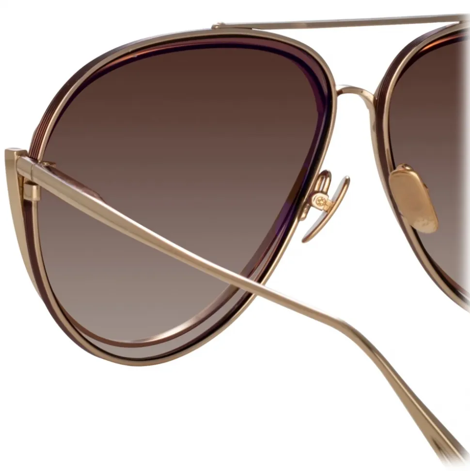 Linda Farrow – Francisco Aviator Sunglasses in Light Gold – LFL1410C3SUN – Linda Farrow Eyewear