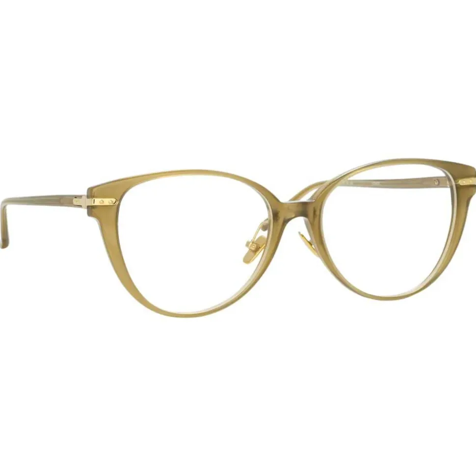 These cat eye optical glasses from the new Linda Farrow LINEAR collection are the epitome of a modern classic. Crafted from khaki Italian hand polished acetate and ultra lightweight 18-22 carat luna gold-plated titanium.