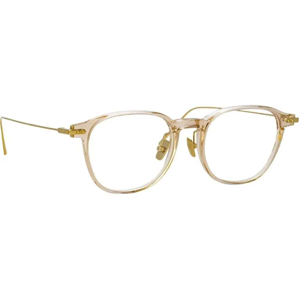 Finding inspiration in the clean lines of architecture these D-Frame eyeglasses from the LINDA FARROW Linear collection are an example of simplicity executed with precision. The ash acetate front, hand polished for a high shine, is engineered with custom titanium hinges which give way to sleek 22 carat luna gold plated temples. Titanium nose pads set into the acetate front can be adjusted for a tailored fit. This frame has been specifically designed with curved temples for an Asian fit. Also available in European fitting.