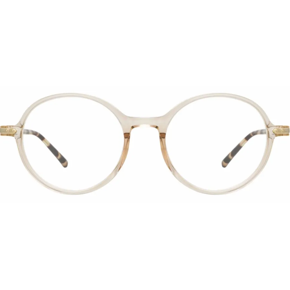 These oval silhouette optical frames from the LINDA FARROW Linear collection offer an understated modern look. The Merrick frame is sculpted from translucent ash acetate teamed with 22 carat light gold plated titanium nose pads for a tailored fit. Custom engineered hinges with a hidden ‘LF’ logo detail transition to contrasting tortoise shell acetate temples, curved to offer an Asian fitting. Subtle logo detailing at the brow, and a gold linear line running along the side of the rim complete the style. Also available in European fitting.