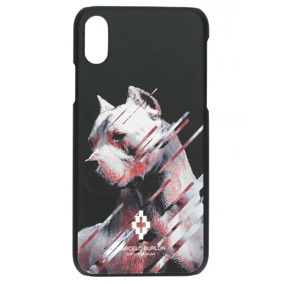 Marcelo Burlon Dog printed iPhone case. Black case with multicolor Dog printed embellishment. Suitable for iPhone.