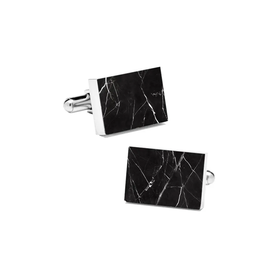 Black Marquina Rectangular Marble Cuff Links