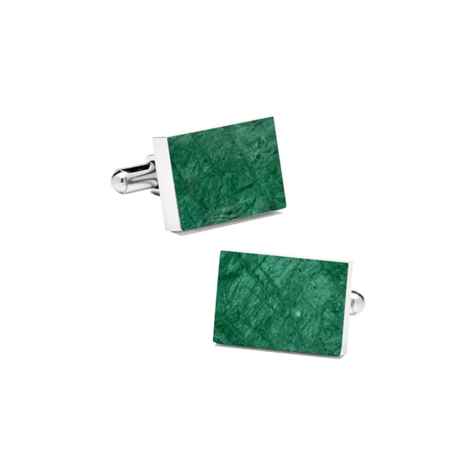 Emerald Green Rectangular Marble Cuff Links