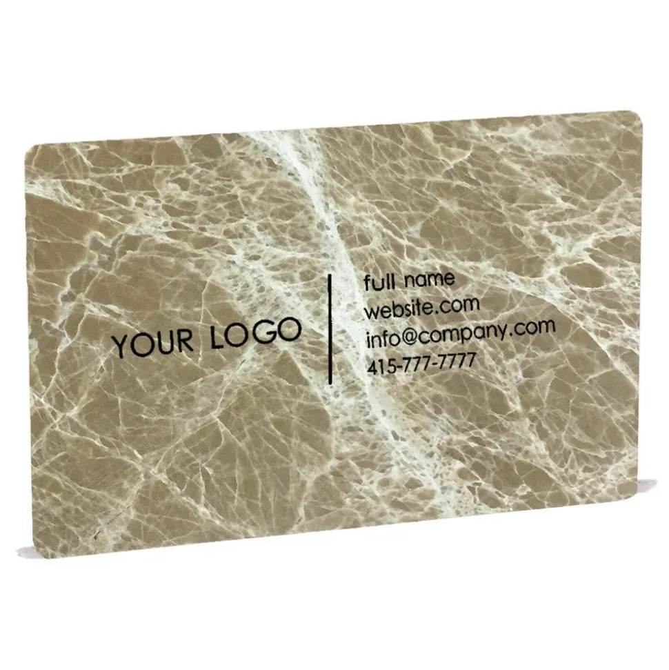 We introduce to you the world’s very first marble stone business cards! No two marble pieces will ever be fully the same since are dealing with 100% natural marble. Each card you give will leave a lasting impression as no one else will have the same type of card!