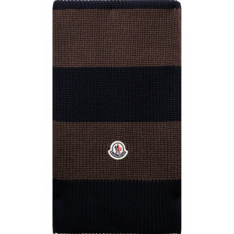 Moncler Brown and Black Scarf. Brown and black scarf, logo patch to the front.