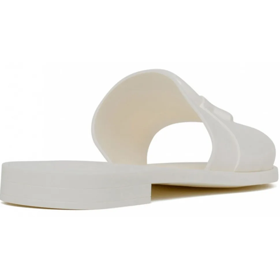 Moncler White Mon Slides decorated with three-dimensional logo strap. TPU upper and sole.