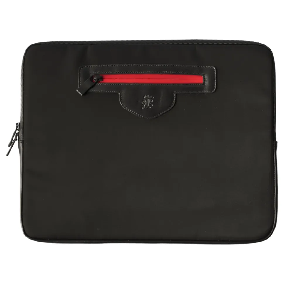Whether on its own or slipped into another bag, the slim and lightweight TecknoMonster MV Agusta Laptop Folder provides maximum protection in a sleek design. The Laptop Folder can hold laptops up to 14″ and features a quick access zipped front compartment to hold essential accessories. A simple and exclusive design made out of nylon with leather and soft carbon inserts.