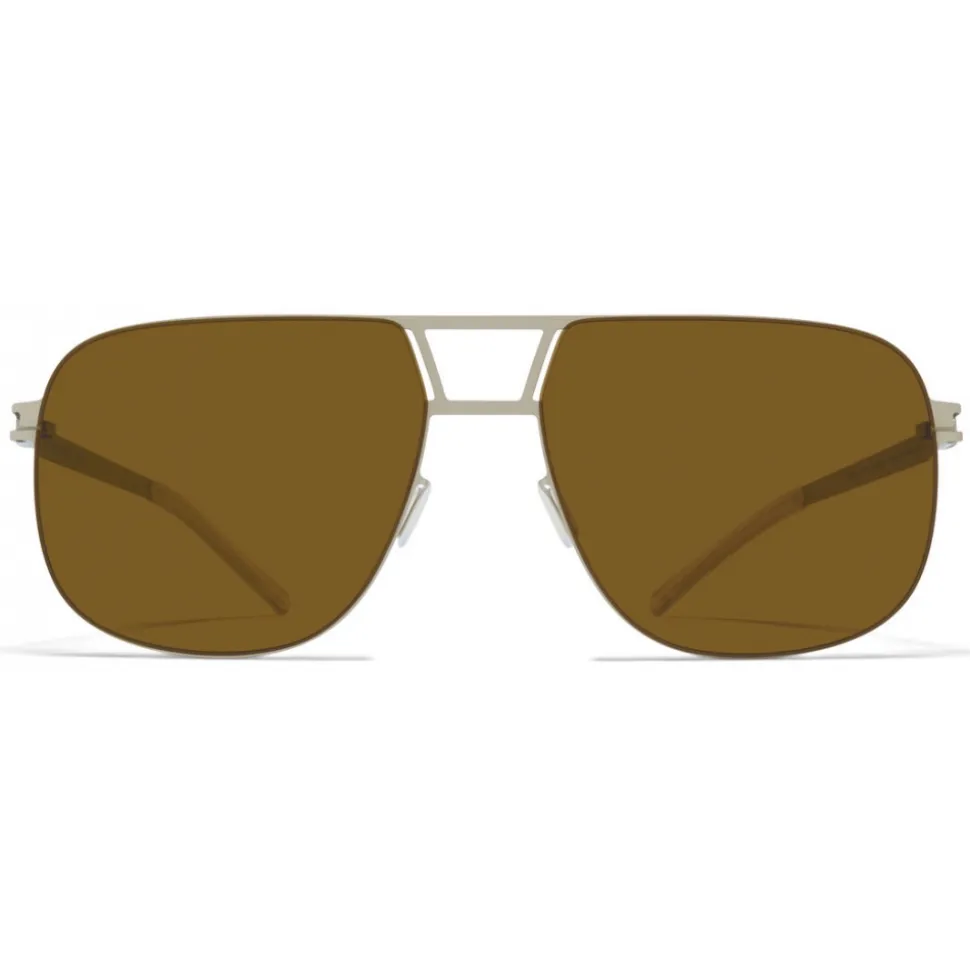 Made of lightweight stainless steel, AL in Matte Silver with Raw Brown Solid lenses is an aviator-shaped sunglass frame from the MYKITA NO1 collection. Handcrafted in Berlin.