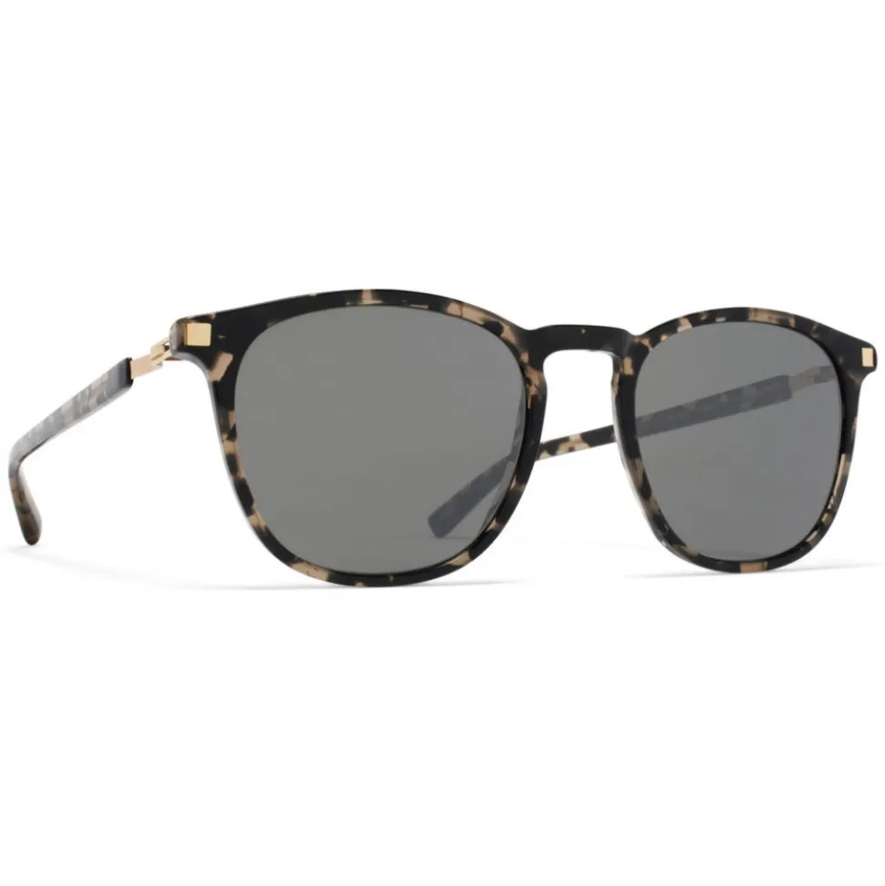 Made of lightweight stainless steel and slender acetate, ALUKI in C22 Antigua/Champagne Gold with Mirror Black lenses is a panto-shaped sunglass frame from the MYKITA LITE collection. Handcrafted in Berlin.