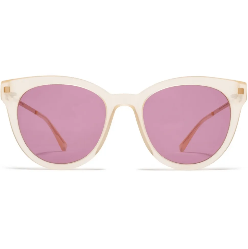 Made of lightweight stainless steel and slender acetate, ANIK in C47 Melon Sorbet/Champagne Gold with Plum Solid lenses is a panto-shaped sunglass frame from the MYKITA LITE ACETATE collection. Handcrafted in Berlin.