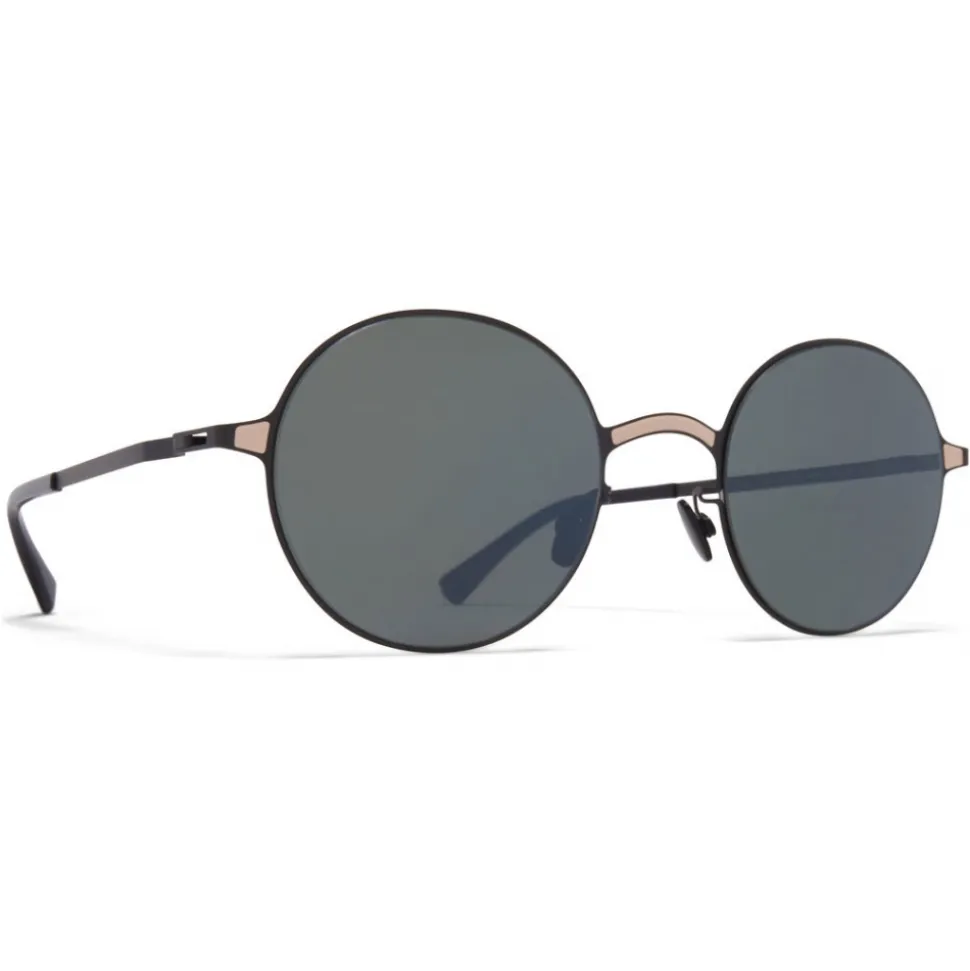 Made of lightweight stainless steel and slender acetate, BLU in Black/Sand with Mirror Black lenses is a round-shaped sunglass frame from the MYKITA LITE ACETATE collection. Handcrafted in Berlin.