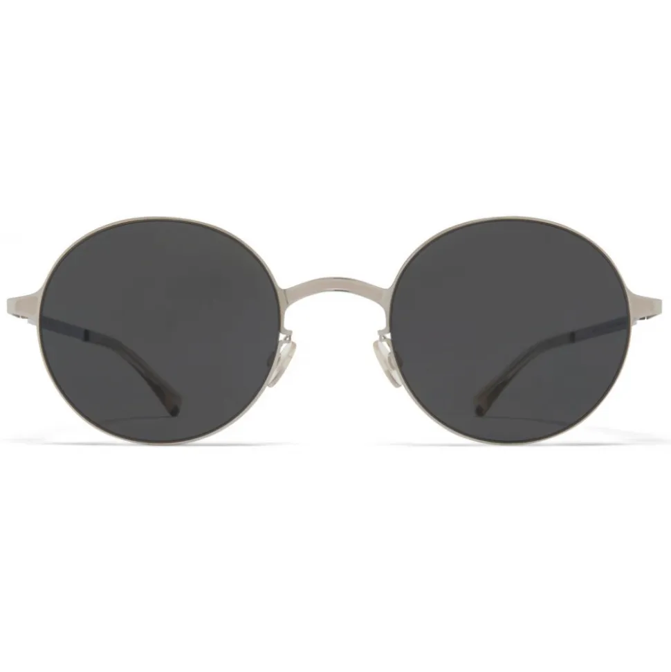 Made of lightweight stainless steel and slender acetate, BLU in Silver/Cinerous Grey with Dark Grey Solid lenses is a round-shaped sunglass frame from the MYKITA LITE ACETATE collection. Handcrafted in Berlin.