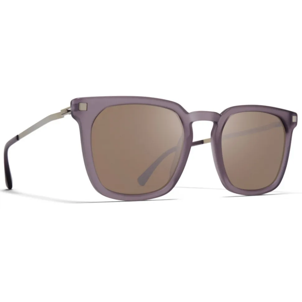 Made of lightweight stainless steel and slender acetate, BORGA in C100 Matte Smoke/Matte Silver with Polarised Pro Hi-Con Brown Silver Flash lenses is a square-shaped sunglass frame from the MYKITA LITE ACETATE collection. Handcrafted in Berlin.
