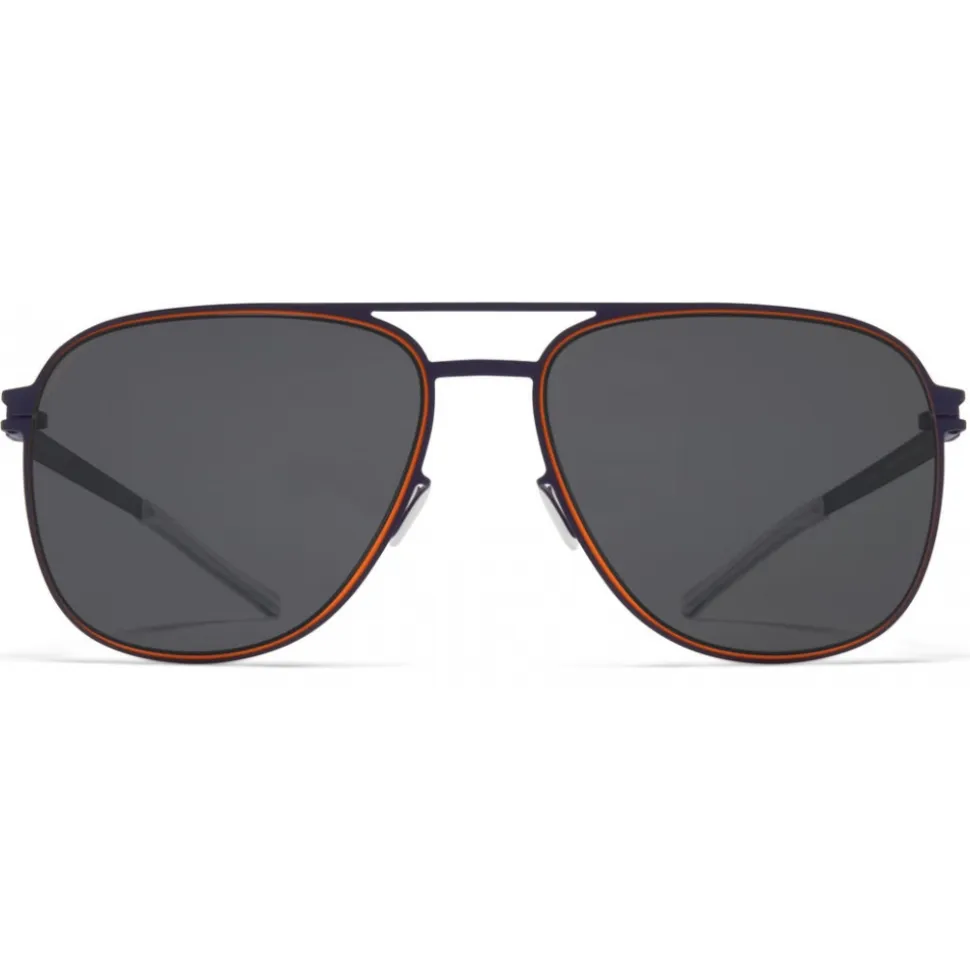 Made of lightweight stainless steel, CALEB in Indigo/Orange with Polarised Pro Hi-Con Grey lenses is an aviator-shaped sunglass frame from the MYKITA NO1 collection. Handcrafted in Berlin.
