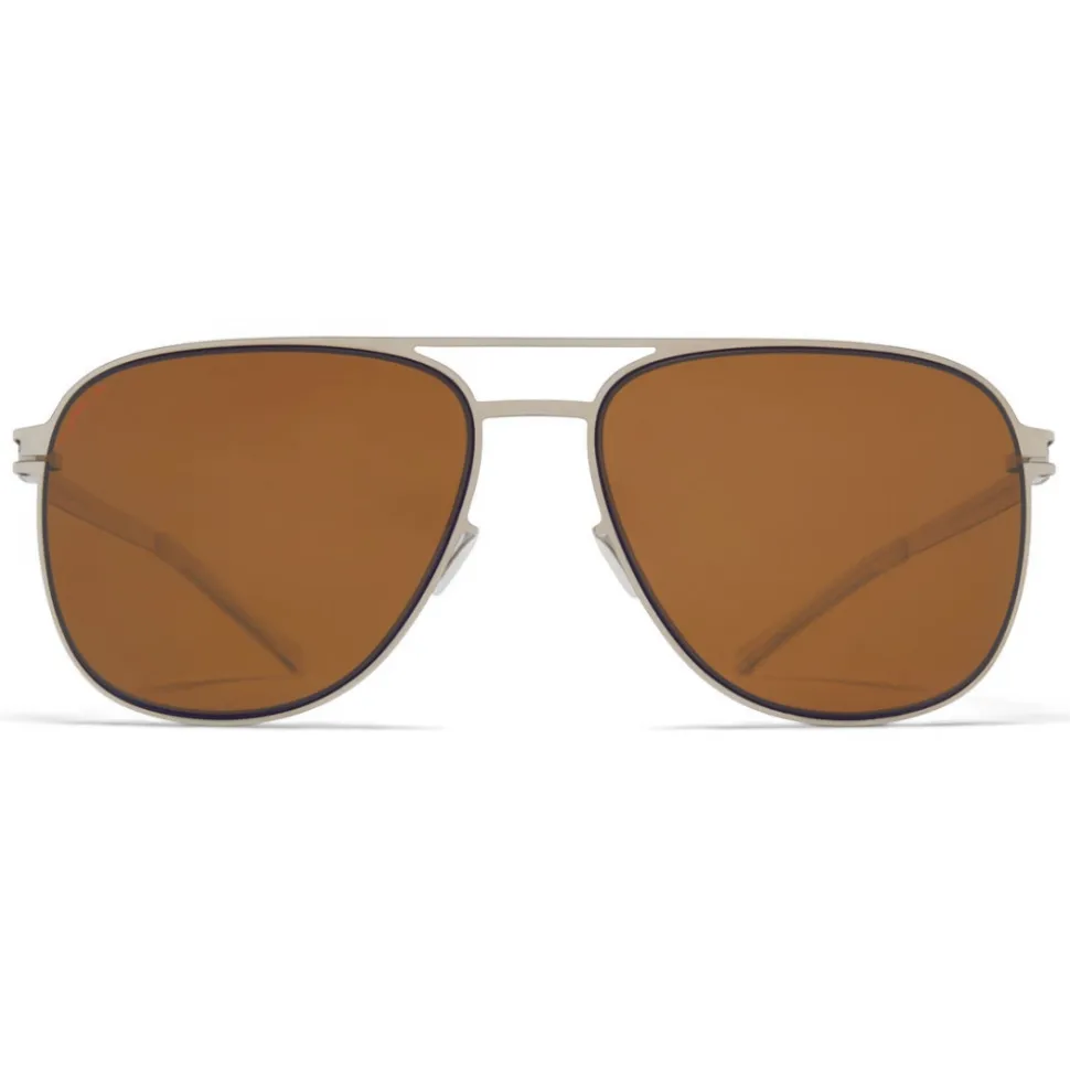 Made of lightweight stainless steel, CALEB in Silver/Blue Velvet with Polarised Pro Amber Brown lenses is an aviator-shaped sunglass frame from the MYKITA NO1 collection. Handcrafted in Berlin.