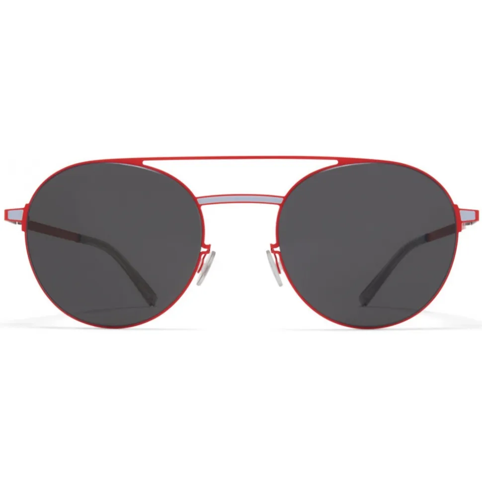 Made of lightweight stainless steel and slender acetate, ERI in Rusty Red/Powder Blue with Dark Grey Solid lenses is a panto-shaped sunglass frame from the MYKITA LITE ACETATE collection. Handcrafted in Berlin.