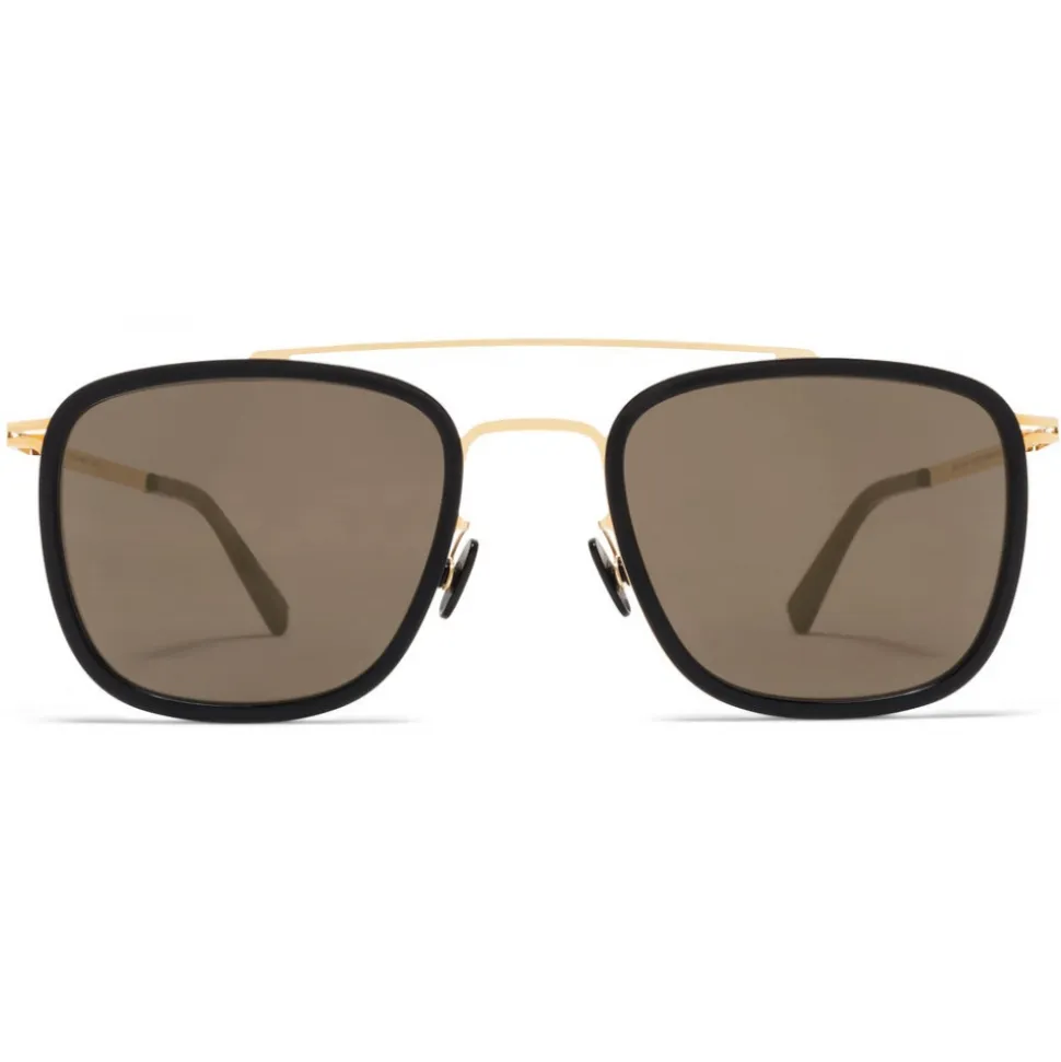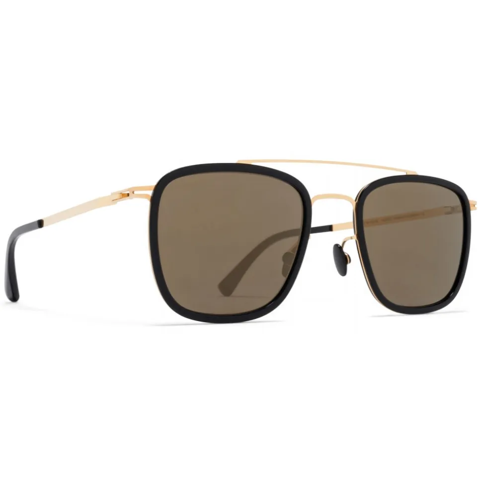Made of lightweight stainless steel and slender acetate, HANNO in A15 Glossy Gold/Black with Brilliant Grey Solid lenses is an aviator-shaped sunglass frame from the MYKITA LITE ACETATE collection. Handcrafted in Berlin.